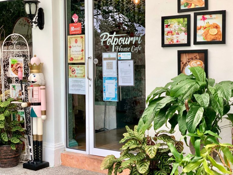 Potpourri House is a charming cafe with a romantic atmosphere. The elegant feel of this space is enhanced by the white-ish furnishings and décor.